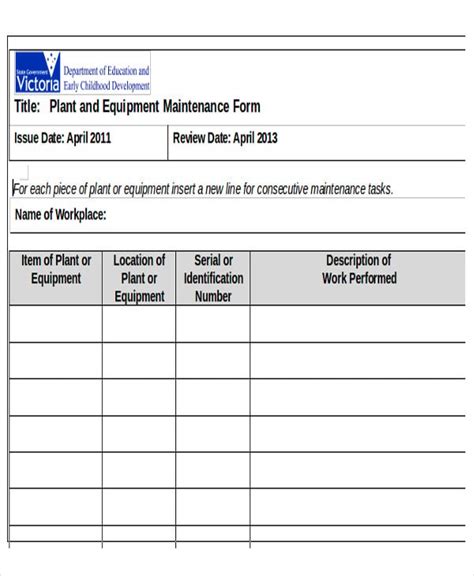 Free Download heavy equipment maintenance forms PDF PDF